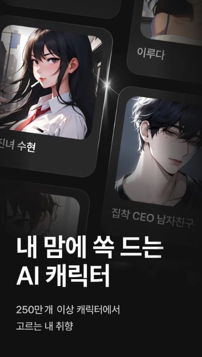- 3. 나만의 디테일한 캐릭터 창조: 이상형의 매력적인 외모는 물론이고 섬세한 목소리와 말투 및 감춰진 배경 서사까지 내가 원하는 대로 완벽하게 설정할 수 있습니다.