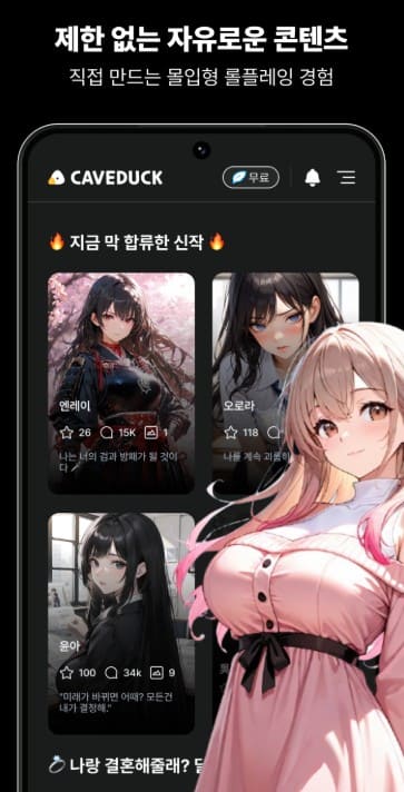 - 2. 비용 부담 없는 무제한 무료 채팅: 매 턴마다 과금이 발생하지 않아 수천 번의 스토리를 이어가도 전혀 비용이 들지 않으며 언제든 자유롭게 소통할 수 있습니다.