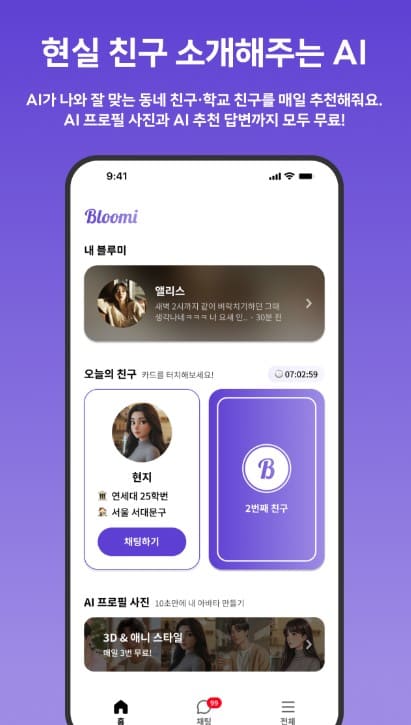 6. 블루미 - AI 친구 채팅 & 현실 친구 만들기앱