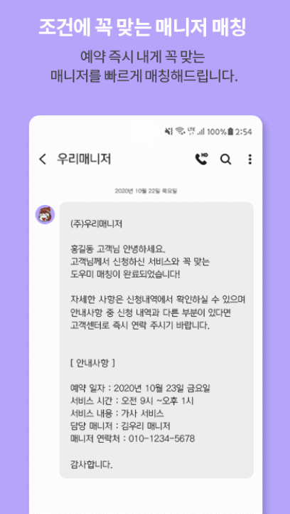 - 3. 조건에 꼭 맞는 매니저 매칭: 신청 조건에 맞는 매니저를 신속하게 매칭하여 제공합니다.