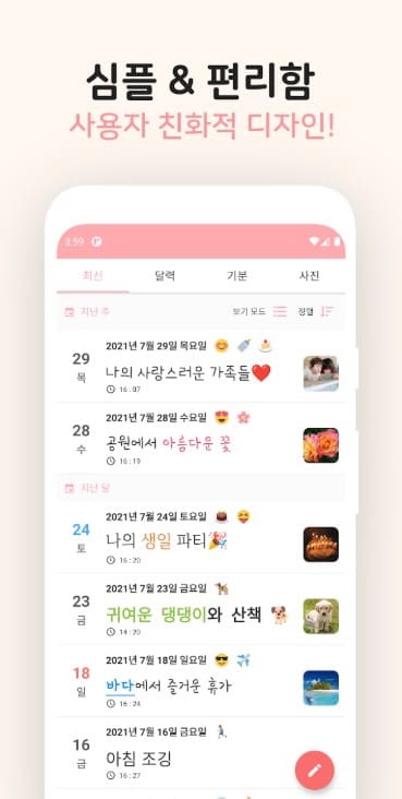 - 7. 사진 추가 기능: 텍스트와 함께 사진을 첨부하여 소중한 추억을 기록할 수 있습니다.