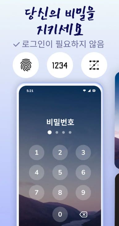 - 3. 앱 잠금 비밀번호 설정: 개인정보 보호를 위해 앱에 비밀번호를 설정할 수 있어, 프라이버시를 안전하게 지킬 수 있습니다.