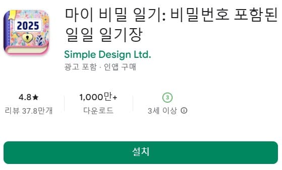 8. 마이 비밀 일기: 비밀번호 포함된 일일 일기장 어플